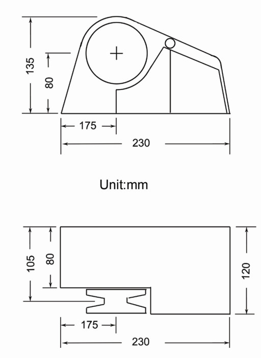 - 230mm x 120mm x 135mts.