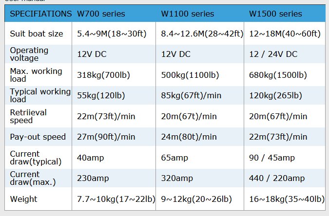 W700 series suit boats from 5.4~9m (18~30ft) or handle up to 13.6kg (30lb) of anchor