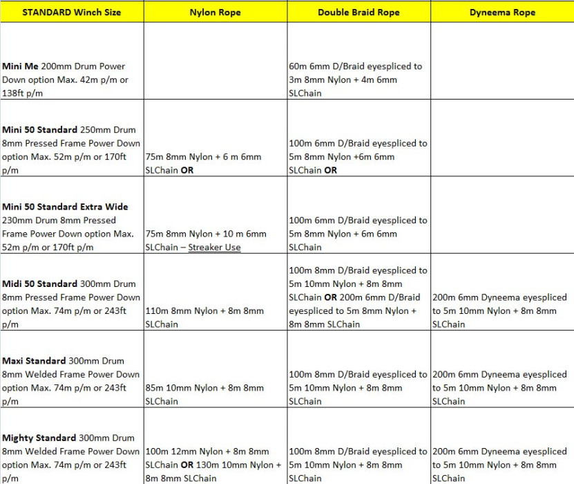 -- All rope and chain is spooled on and off the drum (on all NG Freefall winches)