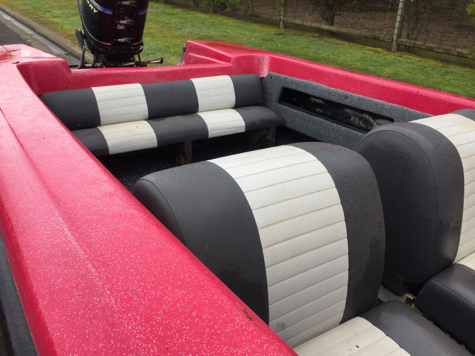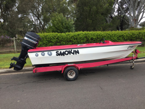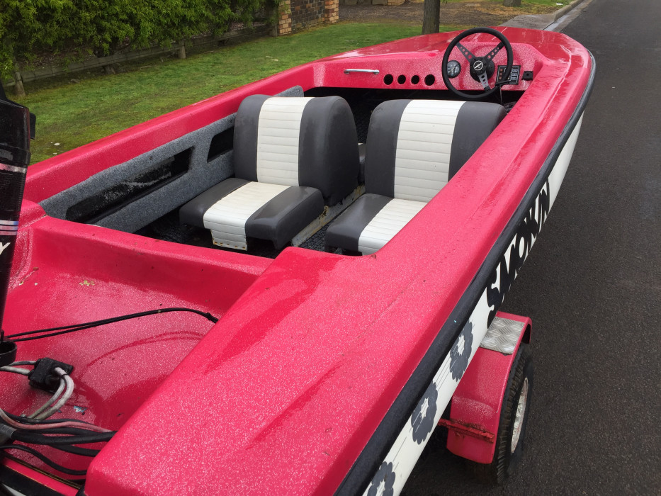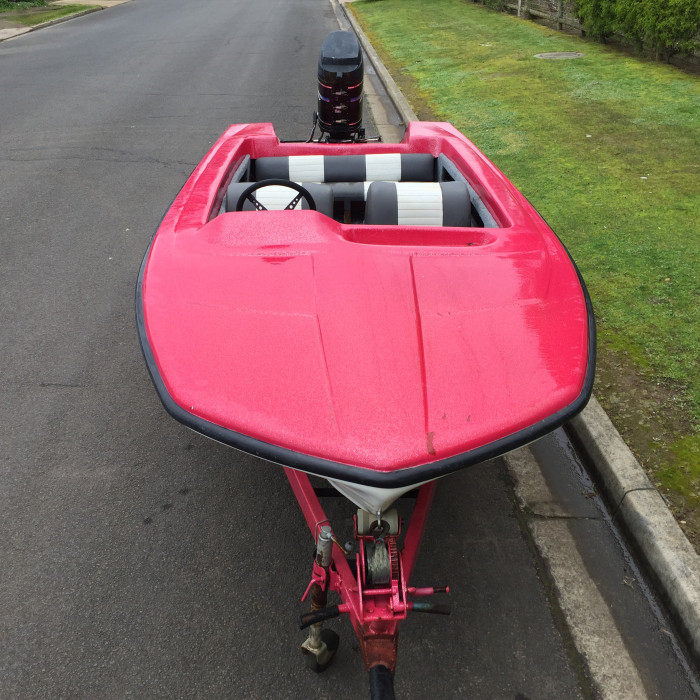 Hull and trailer has recently been redone in red and with a silver sparkle mixed in with the paint to give a smart look.