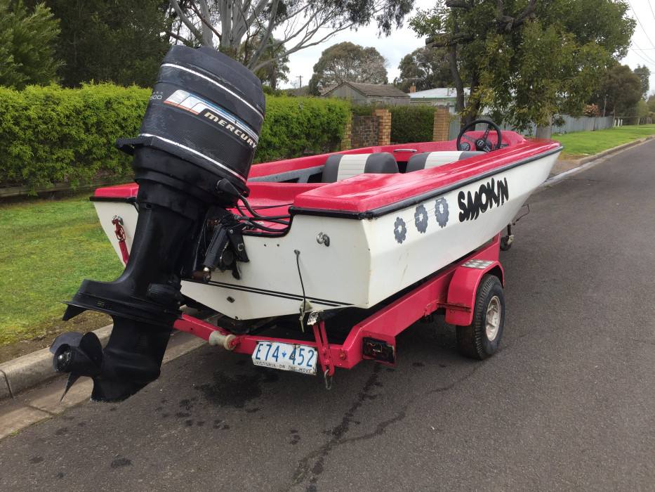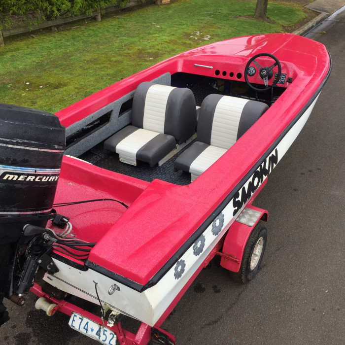 Fibreglass fish or ski boat.