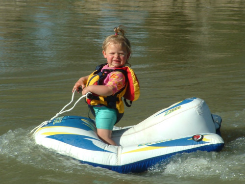 -- Inflatable tube with integrated wood trainer skis