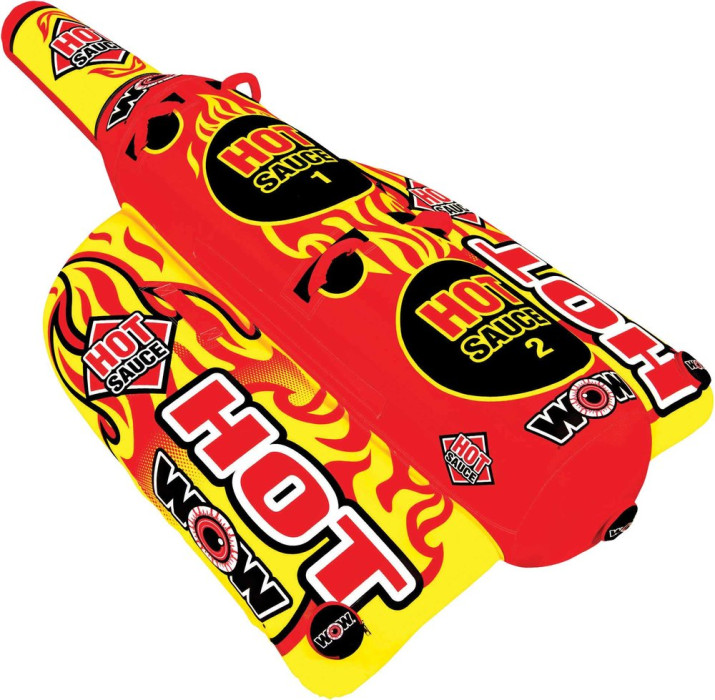 The designers at WOW came up with this homemade recipe by kicking it up a notch! The HOT SAUCE gives 1 to 2 riders a simple way to sit and ride while utilizing custom shaped, large pontoons for fun, stable, and secure riding. So go ahead and try this HOT SAUCE and see if you and your friends can feel the sizzle and reaction all across the lake this summer.