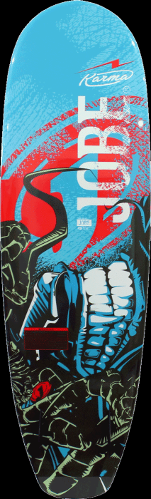 The concave shaped top with EVA traction pad covering the whole deck takes the drama out of learning to wake surf with unlimited foot positions, if your struggling to toss the rope just wriggle your way forward and the Karma's broad rounded won't bury itself if you dive forward on take-off.