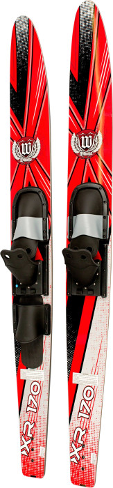 XR170 Adult combos are designed for the beginner. RIM moulded combos with tunnel base and adjustable rubber bindings provide a stable ride to ensure confidence for new skiers up to 90kg. Also comes with a removable crossbar for additional stability and rear binding to use as a slalom ski.